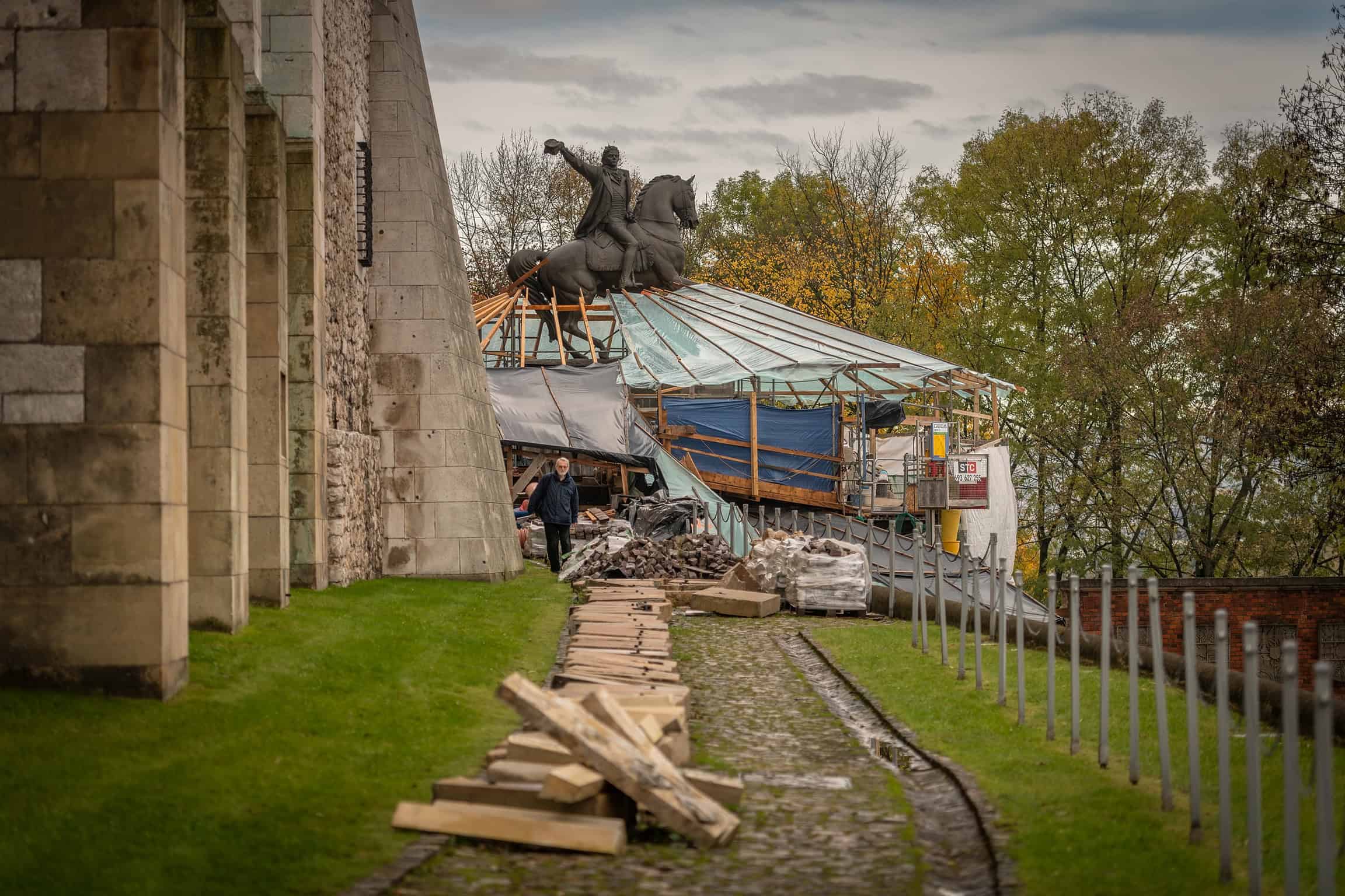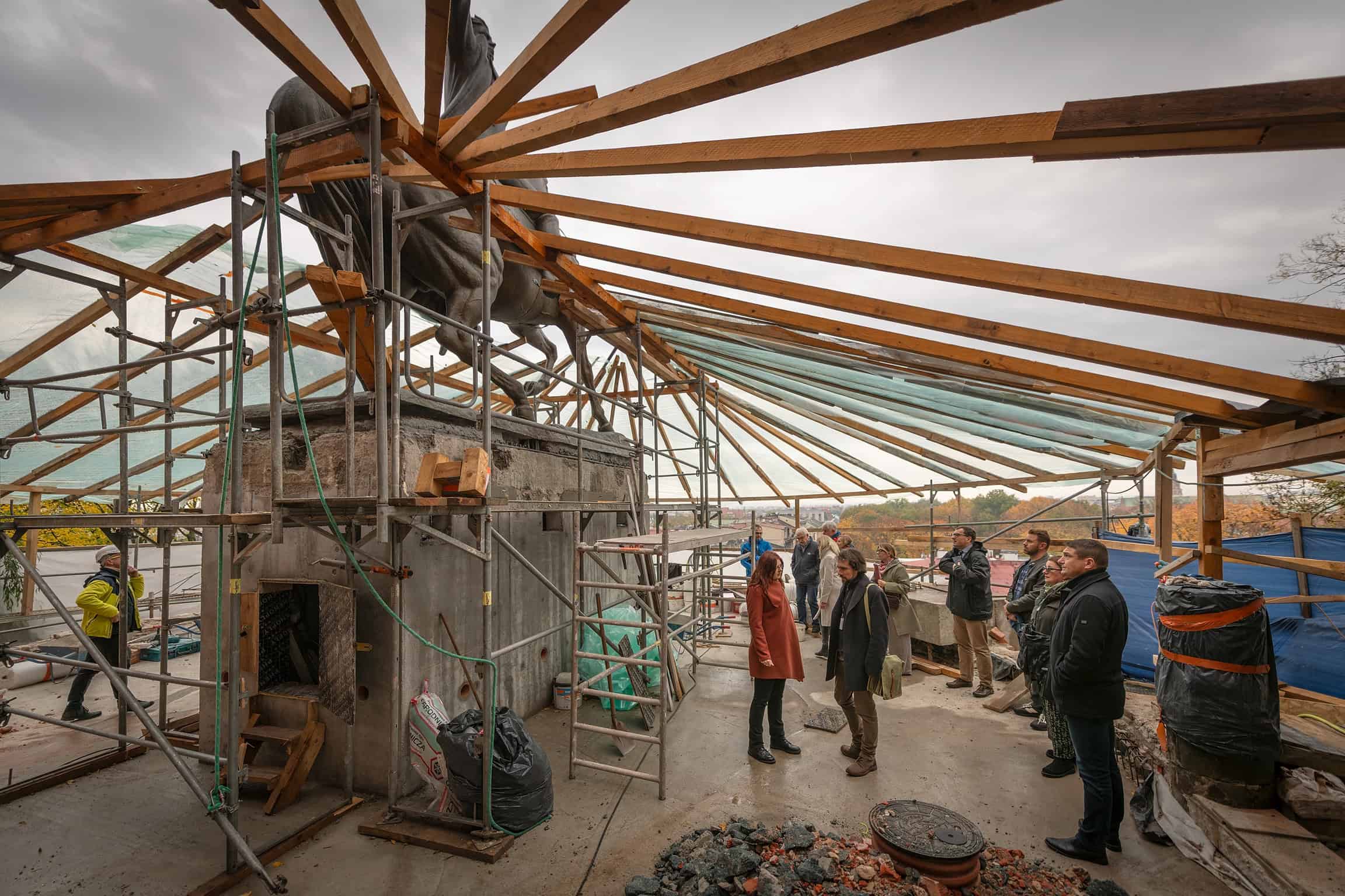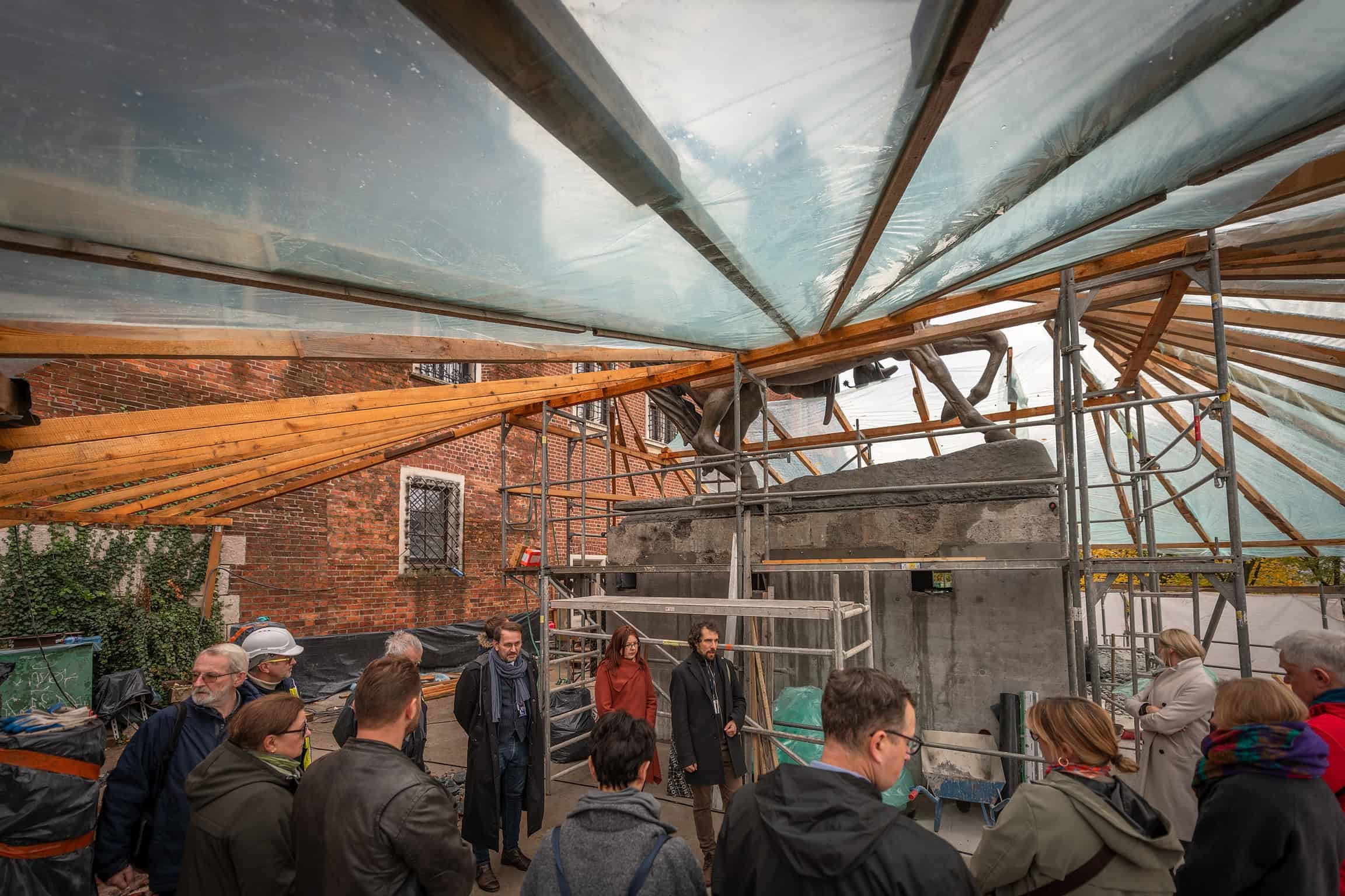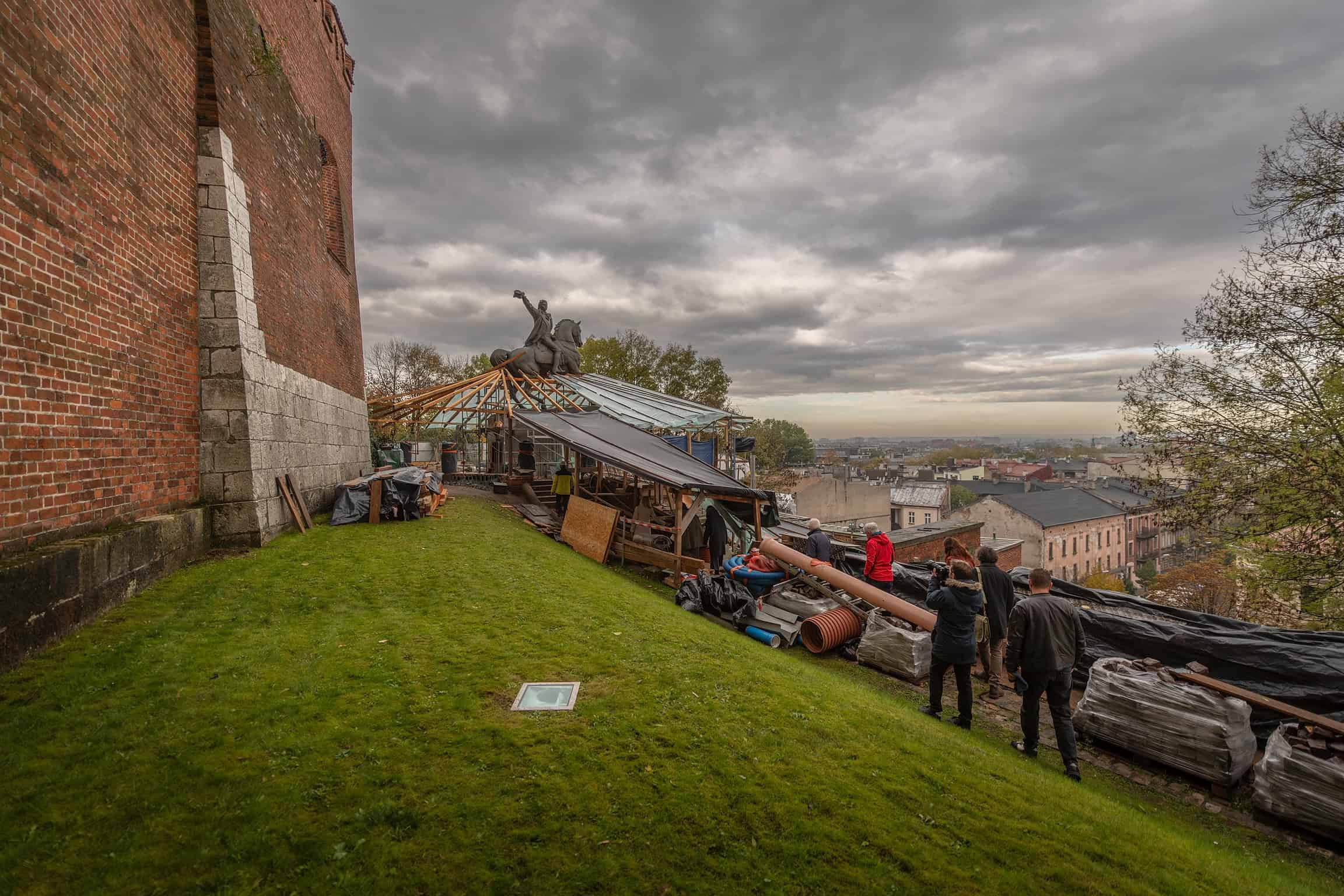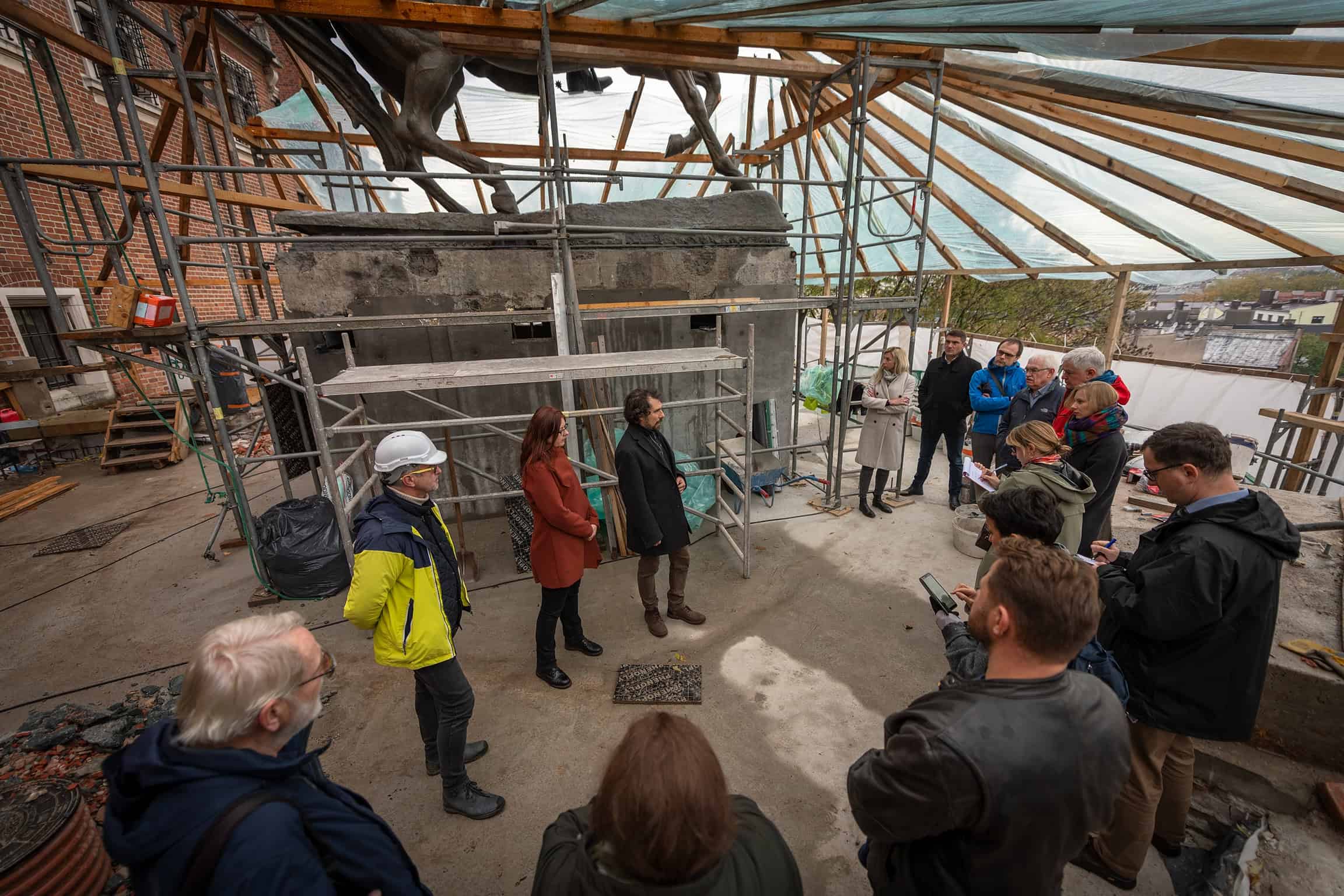 Komisja konserwatorska podczas remontu bastionu Władysława IV z pomnikiem Tadeusza Kościuszki na Wawelu