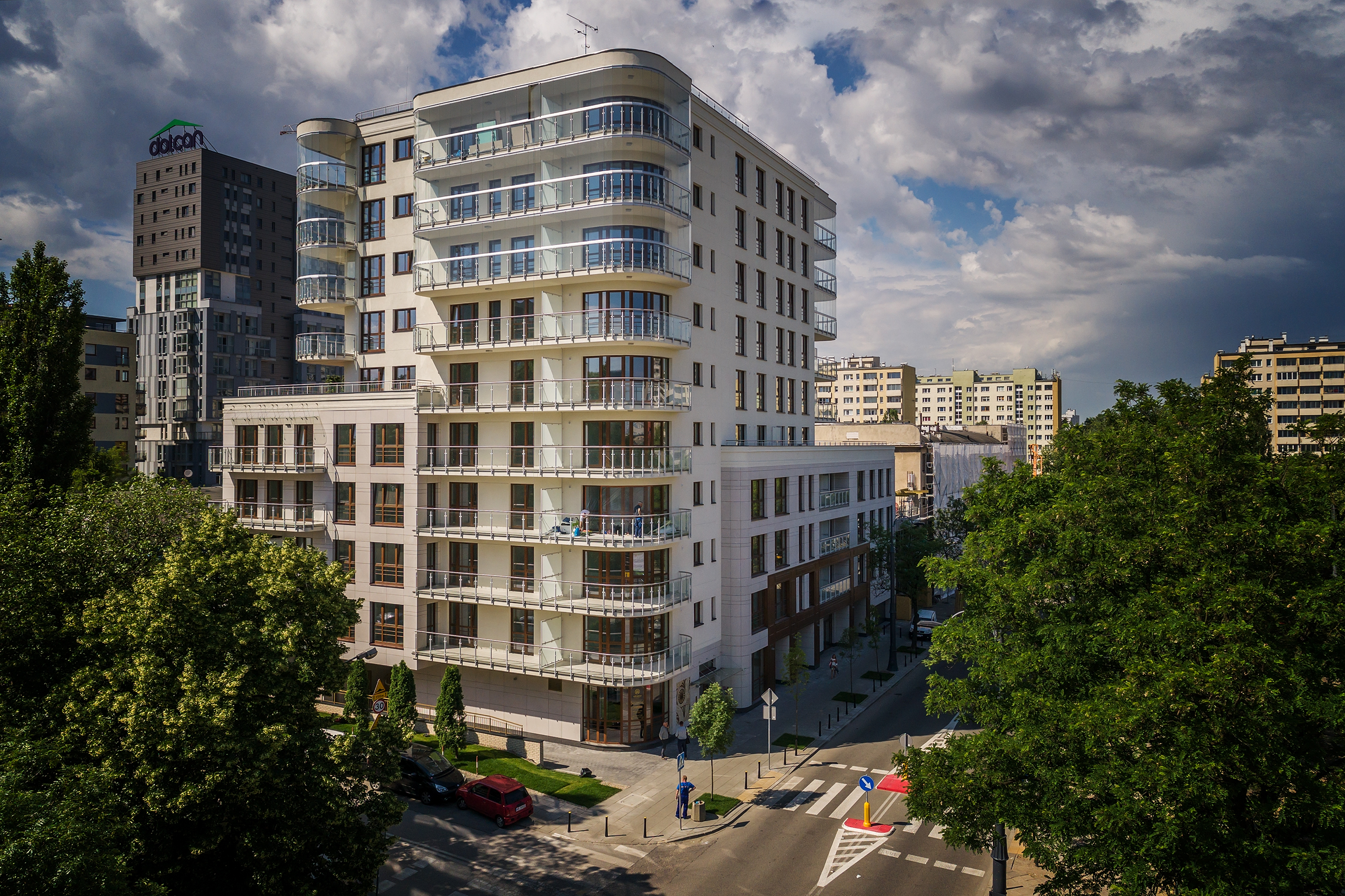 Wysokiej jakości szlachetne materiały wykończeniowe oraz architektura w stylu art déco wyróżniają unikalną bryłę budynku. Elewację frontową zdobi piaskowiec oraz drewniany moduł charakterystyczny dla tej epoki. Dekoracyjna mozaika z kamienia, recepcja typu concierge oraz architektoniczne motywy z Chicago tworzą reprezentacyjne wejście do budynku przez eleganckie lobby. Delikatne oświetlenie LED podkreśla wyszukany charakter klatek schodowych, korytarzy i holi.