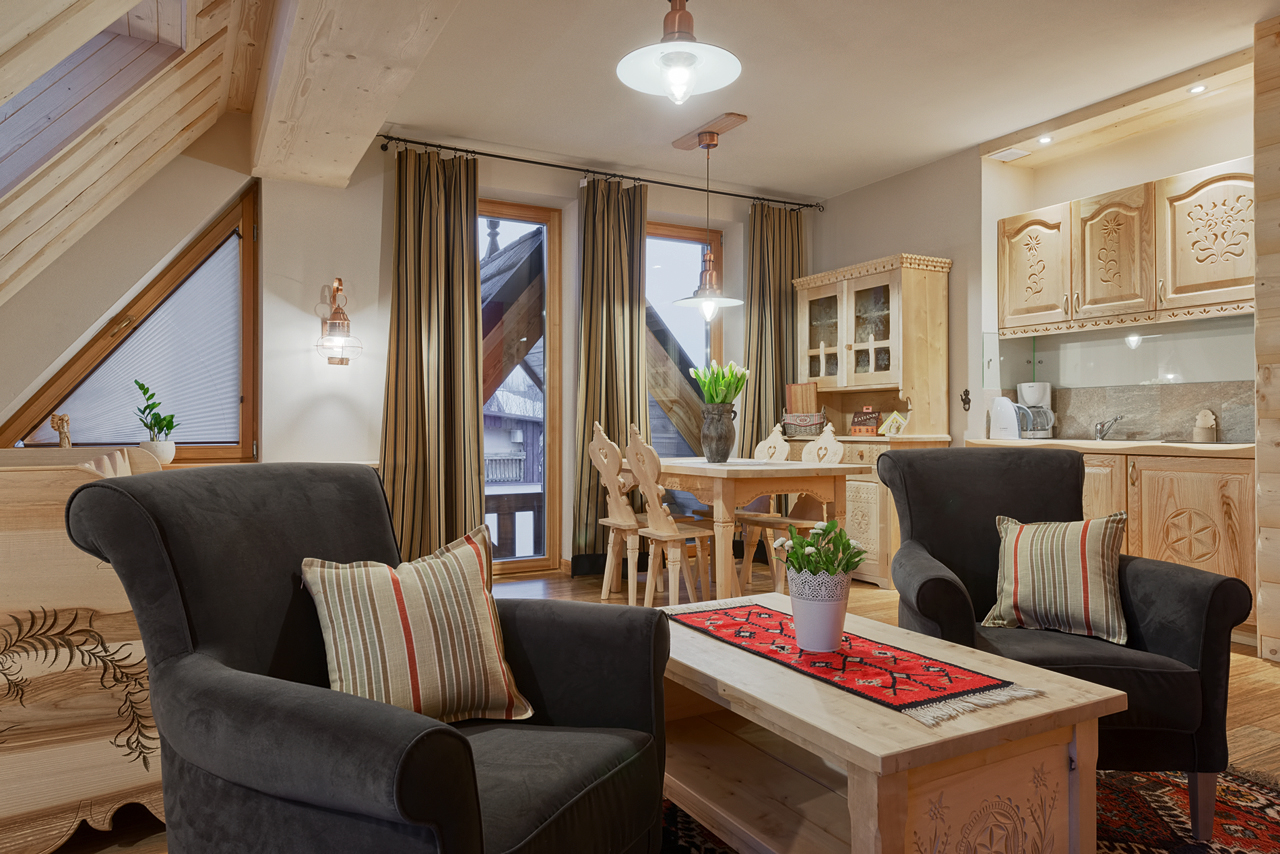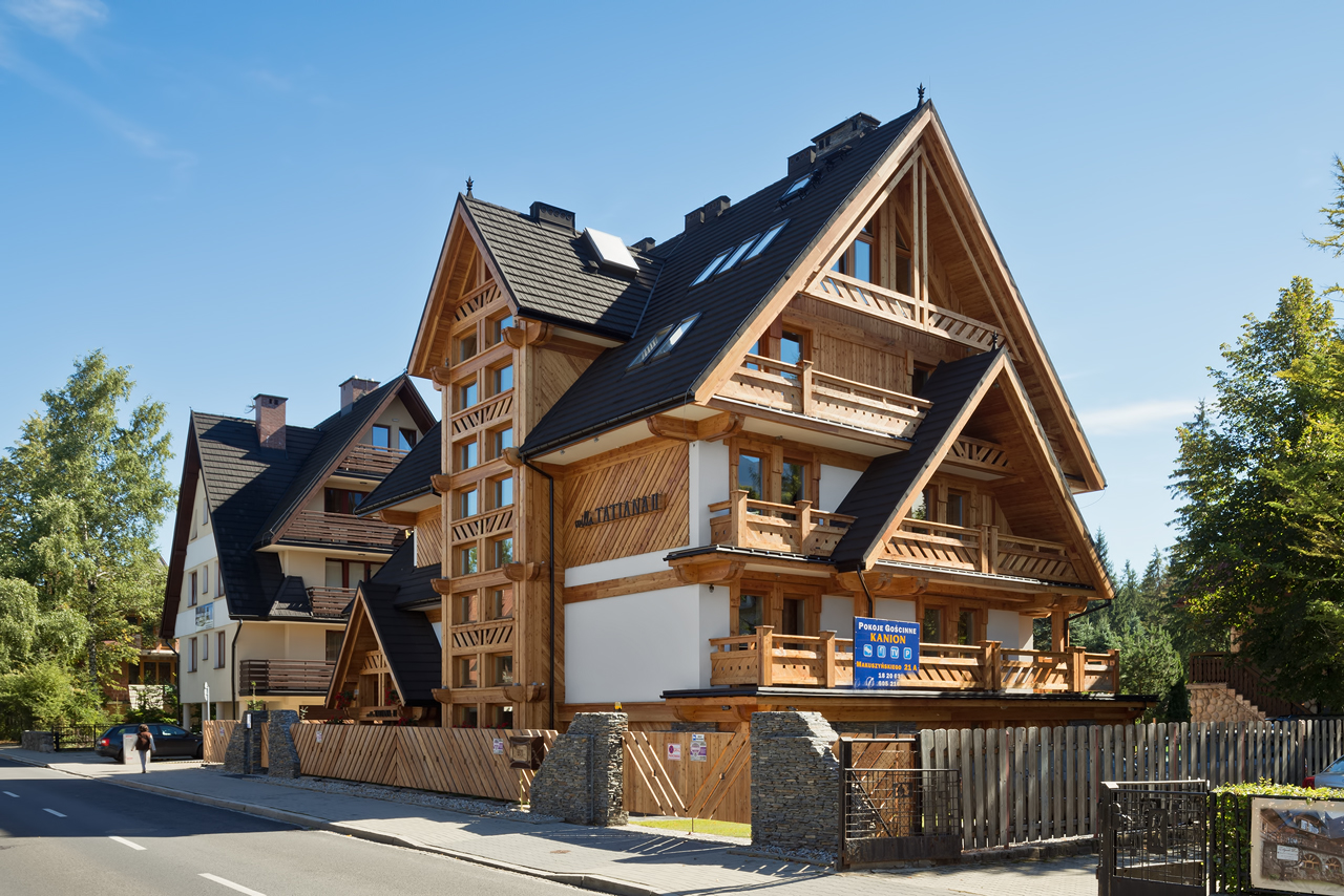 Willa Tatiana lux to górska willa o prawdziwie podhalańskim stylu. Świetna lokalizacja nieopodal Krupówek oraz Doliny Białego, luksusowo wyposażone wnętrza, wykończone szlachetnymi materiałami. Willa jest jedynym na Podhalu obiektem, przez środek którego „rośnie” drzewo wysokie na cztery kondygnacje. 18-metrowy jesion, symbol wszechświata, siły i trwałości, zgodnie z dawnymi wierzeniami zapewnić ma gościom spokojny i bezpieczny sen. Willa Tatiana lux zawiera 8 luksusowych, jednopoziomowych apartamentów, z łazienką, aneksem kuchennym i tarasem widokowym.